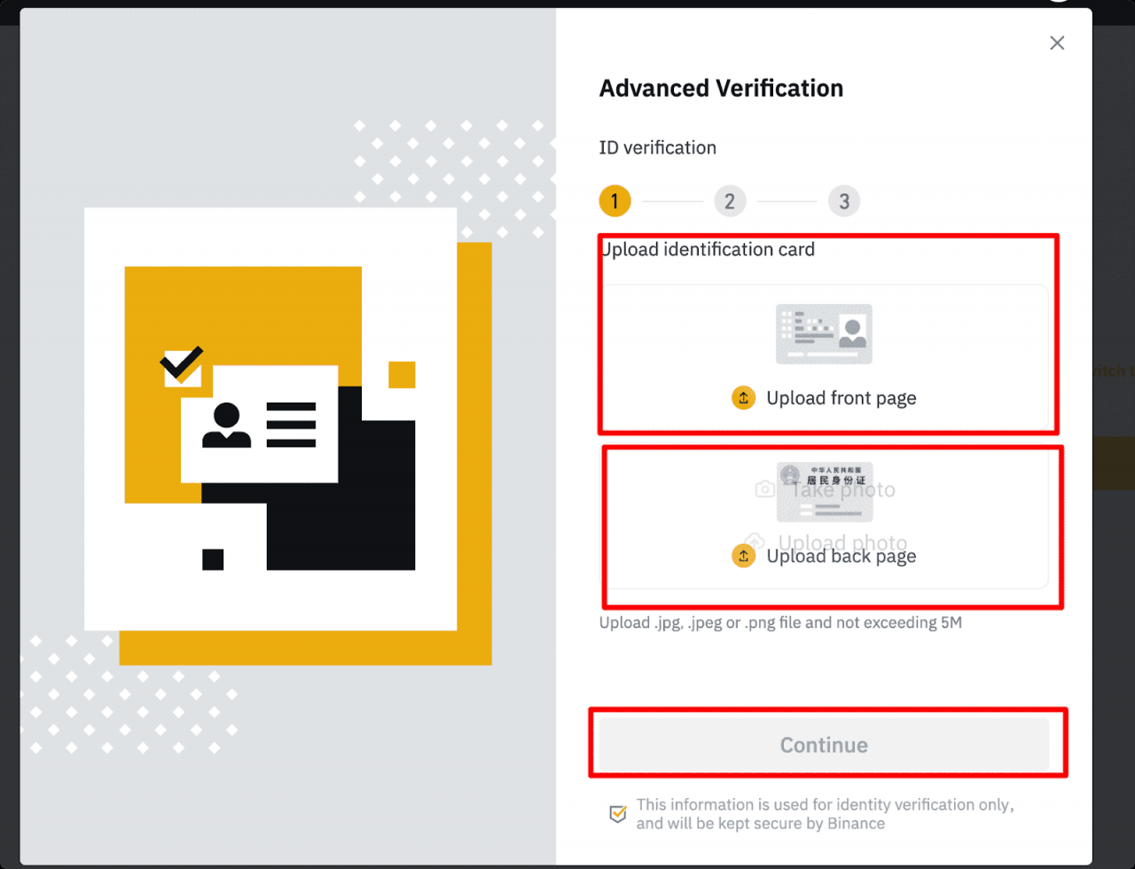 Ví dụ, nếu bạn xác minh bằng thẻ căn cước, bạn phải chụp ảnh mặt trước và mặt sau của thẻ căn cước. Ảnh có thể được chụp bằng điện thoại rồi tải lên từ máy tính của bạn.