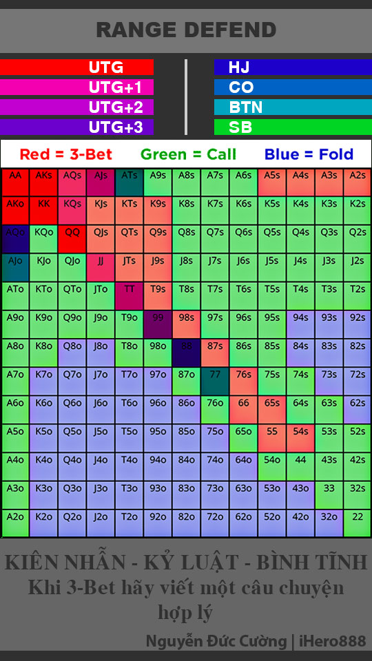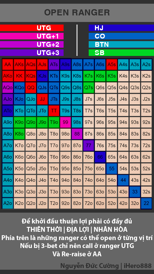 Dưới đây là biểu đồ open ranger ở từng vị trí. Hy vọng có thể giúp ích cho các bạn trong quá trình nâng cao kỹ năng trong Poker.