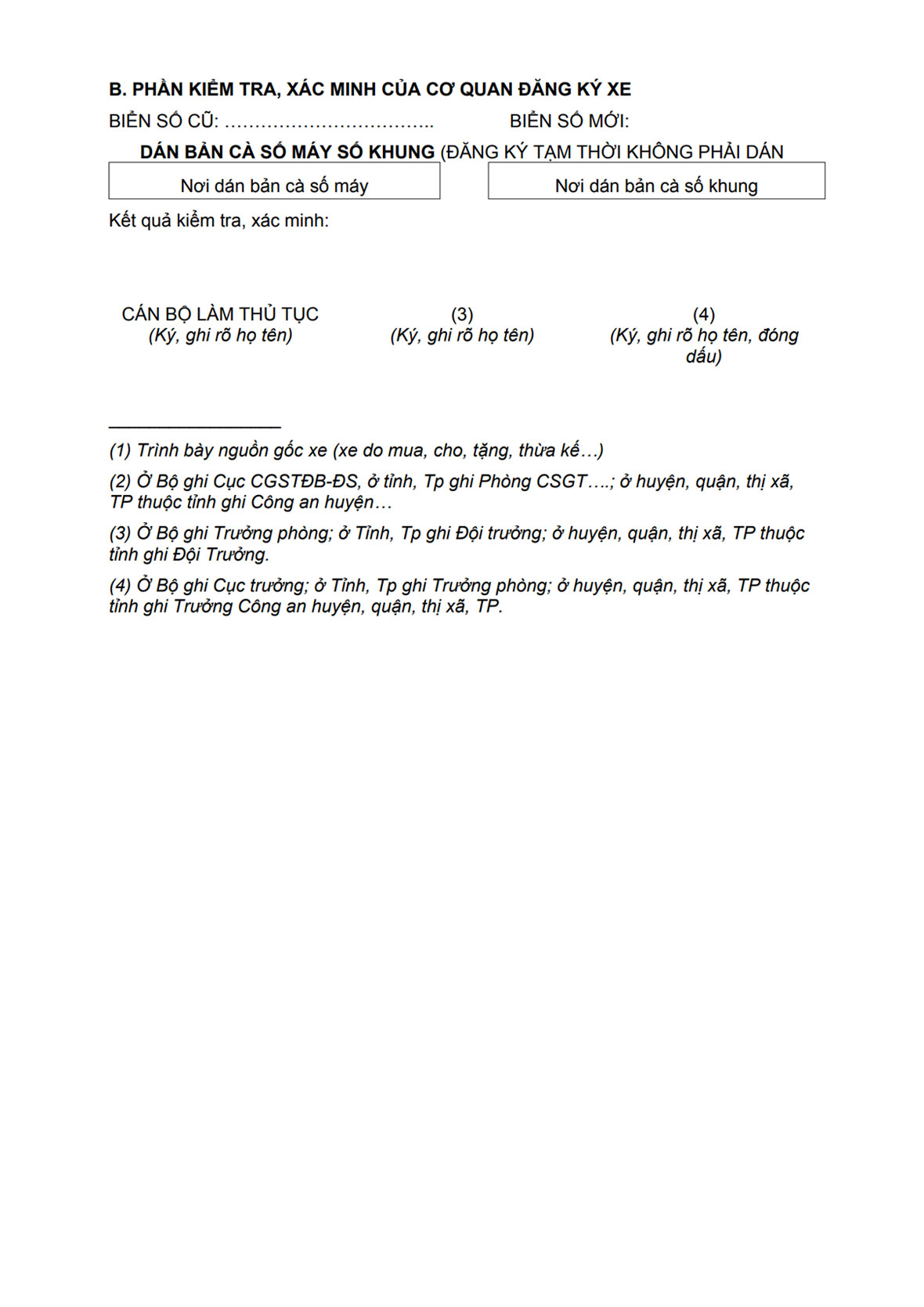 - Lưu 01 phiếu sang tên, di chuyển và 01 giấy khai đăng ký sang tên, di chuyển xe, thông báo, niêm yết và kết quả xác minh.